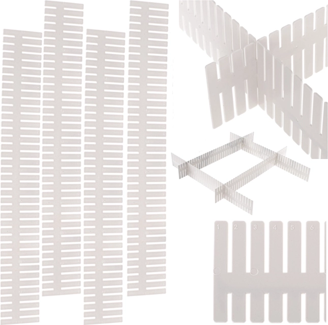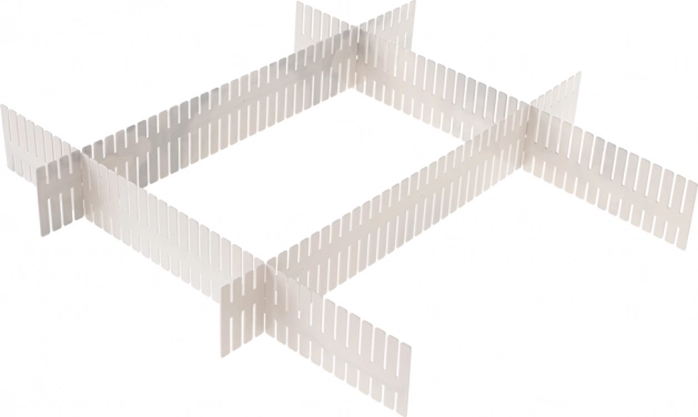 Užtenka pamatuoti pasirinktą stalčių, pritaikyti pertvaros ilgį, įdėti ją į vietą ir sujungti per angas stabilumui užtikrinti.