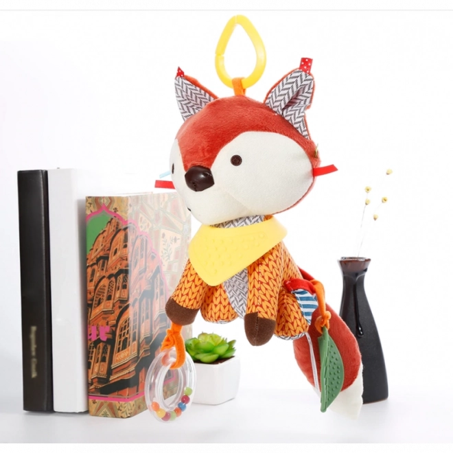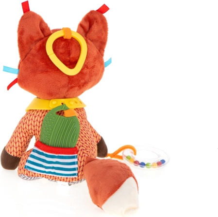 Draugiškos lapės formos žaislas sužavės puikiu apdirbimu. Pagamintas iš įvairių medžiagų, siūlo skirtingas tekstūras ir savybes. Skatina jutiminį suvokimą mažiems vaikams ir jų aplinkos pažinimą.