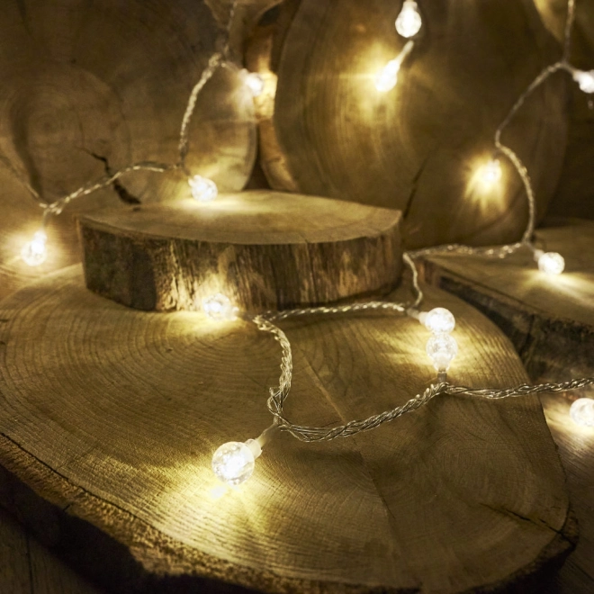 Ši dekoratyvi švieselių girlianda su subtiliais burbuliukais skleidžia malonią šiltai baltą šviesą – idealiai tinka kalėdinei dekoracijai, vestuvėms, vakarėliams ir kasdieniam svetainės ar miegamojo jaukumui. Dėl 10 m ilgio ir 100 LED diodų lengvai apšviesite langą, sieną, turėklus ar eglutę.