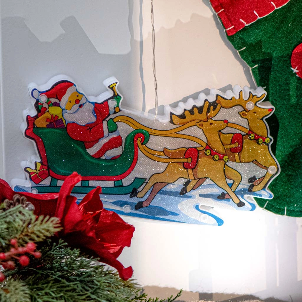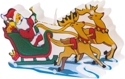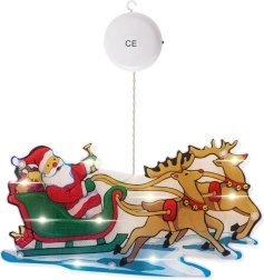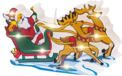 Ši spalvinga kalėdinė dekoracija su Kalėdų Seneliu rogėse ir elniais skleidžia šiltą baltą šviesą ir suteikia jūsų interjerui jaukų šventinį akcentą. Dėl dvipusio motyvo puikiai atrodo iš abiejų lango pusių ir patraukia kiekvieno praeivio dėmesį.