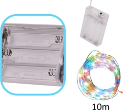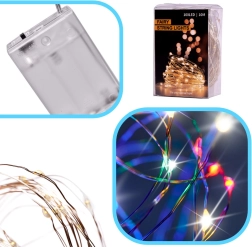 Lengva ir lanksti viela su 100 LED diodų lengvai formuojama aplink šakas, rėmus ar į indus. Daugiaspalvis efektas sukuria šventinę nuotaiką ne tik per Kalėdas – švieselės puikiai tinka ir kaip švelnus vakarinis miegamojo ar svetainės apšvietimas.