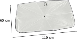 Apsaugokite savo automobilį nuo karščio ir UV spinduliuotės. Šis išmanus skydelis išskleidžiamas taip pat lengvai kaip skėtis, priglaudžiamas prie priekinio stiklo, o jo reflektyvus sluoksnis atspindi saulės spindulius, todėl salonas išlieka pastebimai vėsesnis. Idealu didesniems lengviesiems automobiliams dėl 65 × 110 cm matmenų.
