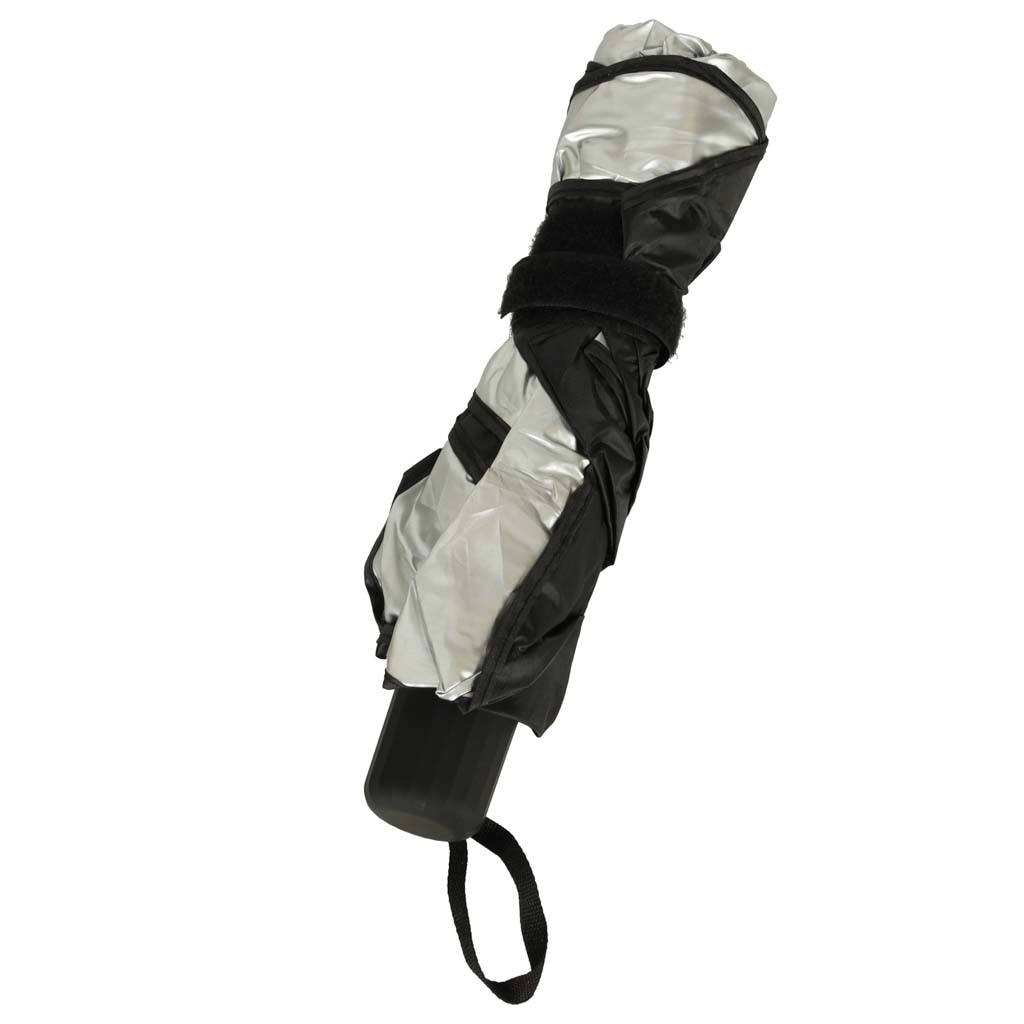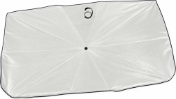 Mėgaukitės vėsesniu automobilio salonu net didžiausiu karščiu dėka praktiško priekinio stiklo saulės skydelio. Išskleidžiamas kaip skėtis, turi veiksmingą UV apsaugą ir reflektyvų paviršių, kuris mažina prietaisų skydelio, vairo ir sėdynių įkaitimą. Kompaktiškai susilanksto į dėklą, todėl užima labai mažai vietos.