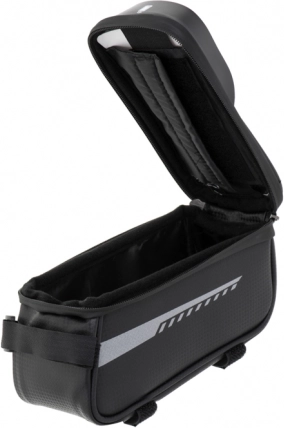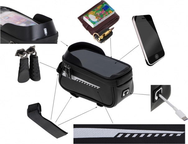 Šis vandeniui atsparus dviračio krepšys yra tobulas aksesuaras kiekvienam dviratininkui, ieškančiam funkcionalaus ir patvaraus sprendimo ilgiems važiavimams. Jis turi specialią vietą telefonui, tad galite lengvai naudoti jį kaip navigaciją arba muzikos grotuvą kelionės metu. Laikiklis sukurtas taip, kad telefonas išliktų matomas ir pasiekiamas per permatomą ir vandeniui atsparų langelį.