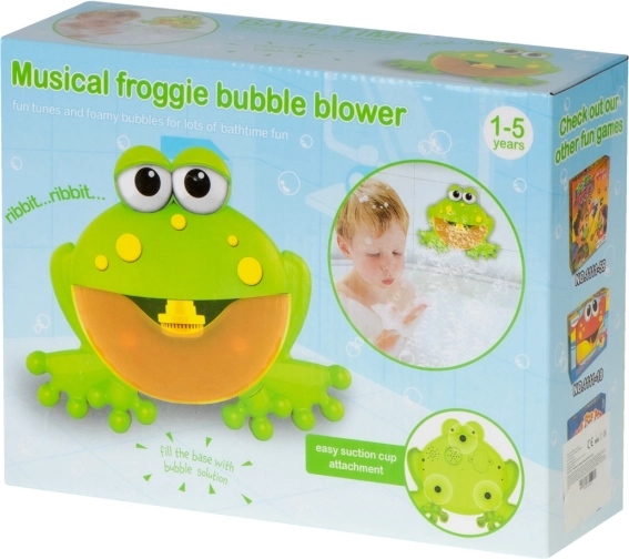 Šis varliuko burbulų generatorius pavers įprastas maudynes džiugia mažyte švente. Tereikia pripildyti nuimamą bakelį vandens ir vaikiškų vonios putų mišiniu, pritvirtinti žaislą siurbtukais prie lygaus paviršiaus ir paspausti mygtuką. Varliukas pradės leisti daugybę burbulų ir gros linksmomis melodijomis, kurios sudomins net ir maudynių vengėjus.