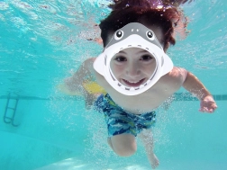 Ši linksma kaukė su ryklio motyvu paverčia kiekvienas maudynes nuotykiu. Minkšto silikono ir patvaraus plastiko derinys užtikrina komfortą ir patikimą sandarumą aplink akis ir nosį, tad vanduo nepatenka ten, kur neturi. Dėl reguliuojamo dirželio kaukė lengvai tinka įvairių formų vaikų veidams.