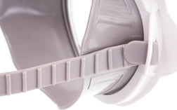 Minkštas silikonas derinamas su plastiku užtikrina malonų prigludimą prie veido ir sumažina vandens patekimą prie akių ir nosies.