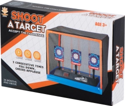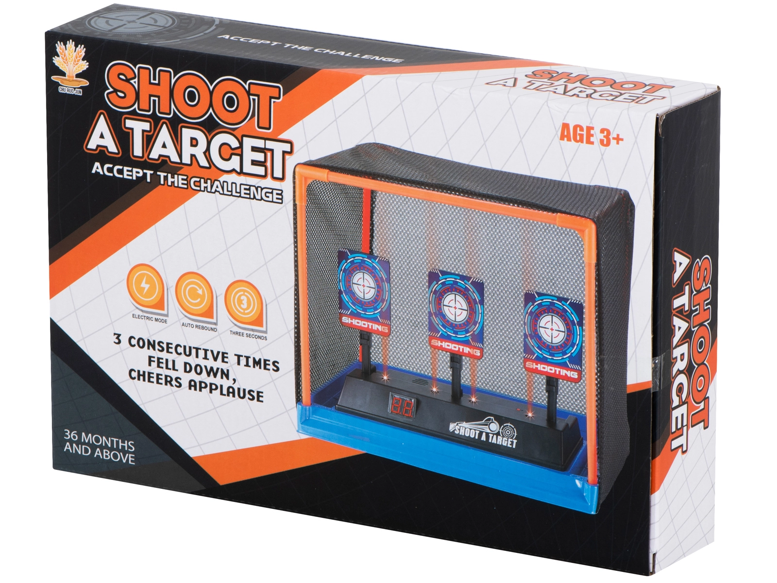 Elektroninis taikinys šaudymui – puikus žaislas vaikams ir suaugusiesiems, norintiems lavinti taiklumą ir akių-rankų koordinaciją. Pataikius taikeliai nusilenkia, o numušus visus tris – automatiškai pakyla, o LED ekrane pridedamas taškas. Tinka putplasčio strėlytėms ir kamuoliukams.