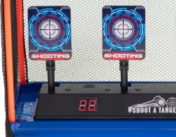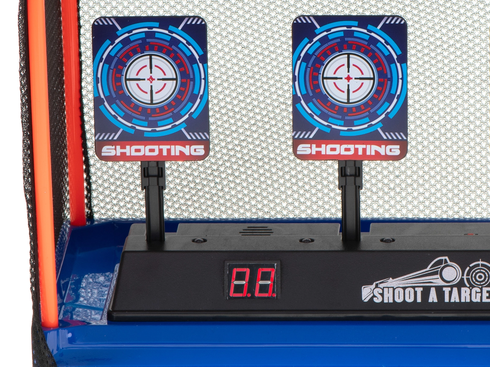 LED ekranas skaičiuoja taškus, o numušus visus tris taikinius, jie automatiškai pakyla – sklandi veiksmo žaidimo patirtis be rankinio nustatymo.