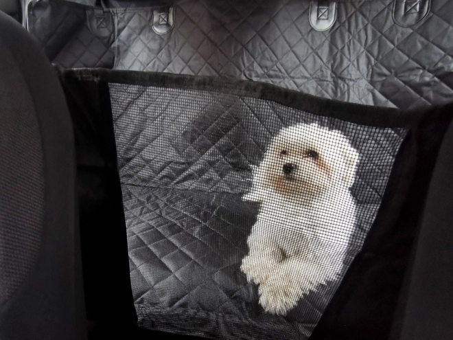 Priekyje yra tinklinė įdėklė, kuri gerina oro cirkuliaciją ir leidžia šuniui matyti jus ir kelią, nekeliant noro pereiti į priekines sėdynes. Apačia iš neslystančios medžiagos stabilumui, yra angų saugos diržams ir dvi praktinės kišenės pavadėliui ar skanėstams. Dėl patvarių medžiagų ir metalinių žiedų uždangalą galima papildomai pritvirtinti prie rankenų virš durelių dar didesniam saugumui.