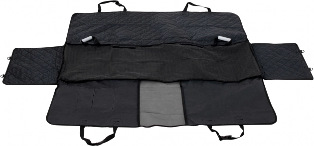 Praktiškas galinių sėdynių uždangalas saugo apmušalus nuo kailio, purvo ir vandens ir kartu sukuria saugų „aptvarą“ jūsų augintiniui. Dėl užtrauktukų ir šoninių atvartų, vandeniui atsparios medžiagos, neslystančio apatinio sluoksnio ir tinklinio langelio kontaktui bei vėdinimui kelionės su šunimi yra švarios, saugios ir patogios.