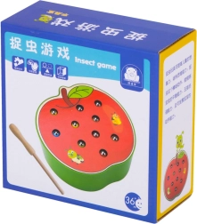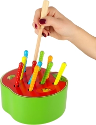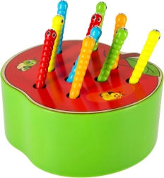 Linksmass medinis žaidimas vaikams, kuriame su magnetine lazdele gaudomi spalvoti vikšreliai, pasislėpę obuolyje. Skatina smulkiąją motoriką, rankų–akių koordinaciją, sutelktumą ir kantrybę. Aukštos kokybės medinis gaminys su magnetine lazdele ir 10 spalvotų vikšrelių – puikus prasmingo žaidimo pasirinkimas, įkvėptas Montessori principų.