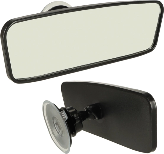 Praktiškas plačiakampis galinio vaizdo veidrodėlis su siurbtuku, skirtas lengvam montavimui ant priekinio stiklo, suteikia didelį ir aiškų vaizdą ir didina važiavimo saugumą bei komfortą. Dėl tvirto pasukamo siurbtuko jį lengvai nustatysite idealiu kampu, veidrodėlis yra sutvirtintas didesniam atsparumui ir užtikrina ilgą tarnavimo laiką.