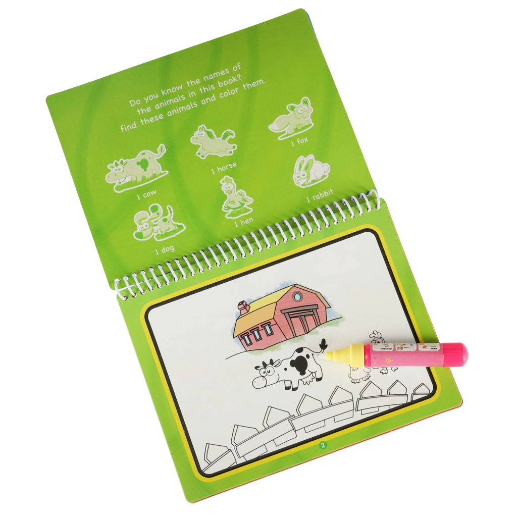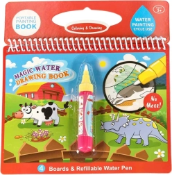 Atraskite linksmą vandens spalvinimo knygelę su fermos motyvais, kuri spalvina vien tik vandeniu – be netvarkos! Tereikia pripildyti pridėtą flomasterį vandeniu ir spalvos magiškai išryškės. Idealu mažiesiems menininkams, skatina kūrybiškumą, smulkiąją motoriką ir suteikia saugų, švarų spalvinimą namuose ir kelionėje.