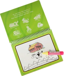 Vandens spalvinimo knygelė su stebuklingu flomasteriu – puikus būdas suteikti vaikams kūrybišką pramogą be dėmių ir be pieštukų ar dažų. Perbraukus puslapį vandens flomasteriu, akimirksniu atsiskleidžia ryškios spalvos ir žaismingos fermos iliustracijos – karvytės, arkliai, vištelės ir kiti.