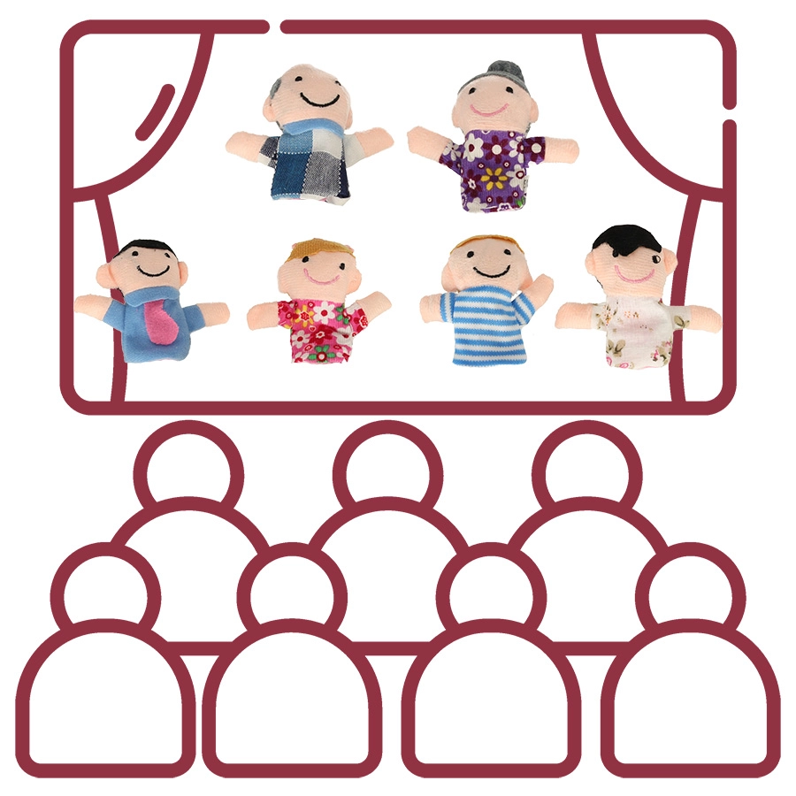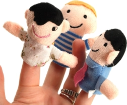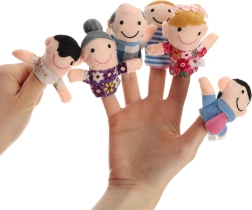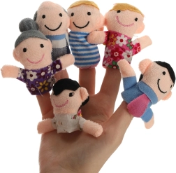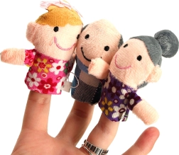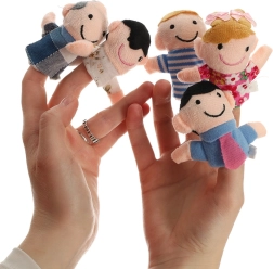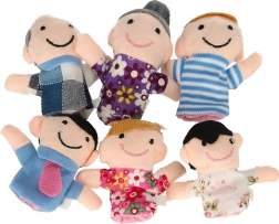 Rinkinį sudaro šešios skirtingų spalvų figūrėlės, vaizduojančios šeimos narius: tėtį, mamą, senelį, močiutę, dukrą ir sūnų. Šias lėles lengva užmauti ant pirštų, jos sukurtos taip, kad būtų linksmos ir paprastos naudoti net vaikams.