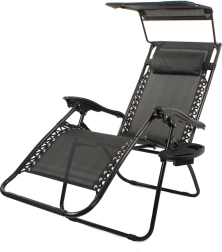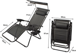 Zero Gravity gultas prisitaiko prie jūsų mėgstamos padėties vienu sklandžiu judesiu ir dėl fiksatoriaus ją patikimai išlaiko. Kvėpuojantis tinklelis malonus net karštyje, o patvari plieninė konstrukcija su milteliniu dažymu užtikrina stabilumą ir ilgaamžiškumą. Integruotas reguliuojamas stogelis saugo nuo saulės, o minkšta pagalvėlė prilaiko galvą.