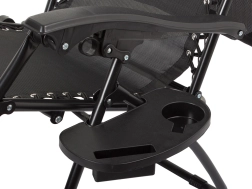 Praktiškas ištraukiamas staliukas suteikia vietos puodeliui, telefonui ir smulkmenoms. Dėl sulankstomos konstrukcijos gultą lengva pernešti ir laikyti – puikus palydovas sodui, terasai, balkonui ir prie vandens.