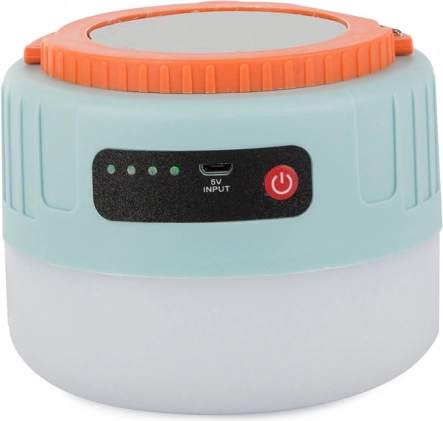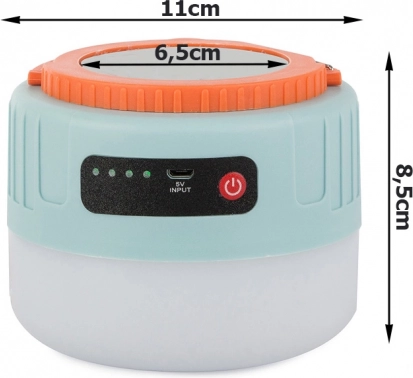 Patvarus plastikinis korpusas, kompaktiški matmenys ir patogi kilpa su karabinu užtikrina lengvą nešiojimą ir pakabinimą palapinėje ar ant kuprinės. Paprastas valdymas vienu mygtuku ir universalus įkrovimas iš išorinės baterijos ar tinklo padidina naudojimo patogumą.