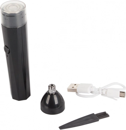 - 2 keičiami antgaliai (rotacinis nosiai/ausims, detalus barzdos formavimui)