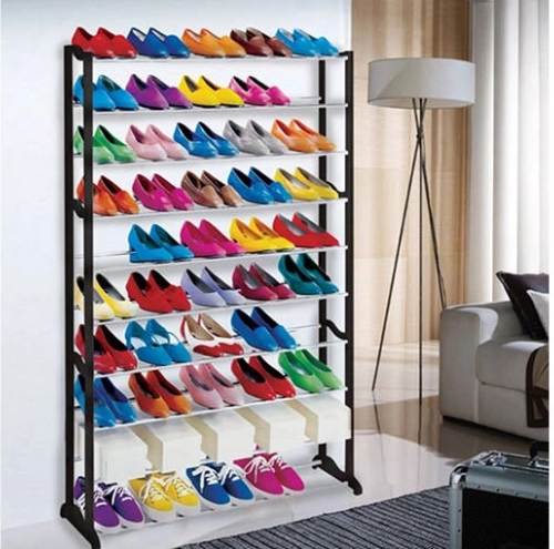 Konstrukcija derina plastikinius stulpelius ir aliumininius vamzdžius, kad būtų mažas svoris, stabilumas ir greitas surinkimas. Reguliuojamas aukštų skaičius 1–10 ir 14 cm lentynų tarpai leidžia pritaikyti stelažą sportbačiams, aukštakulniams ir vaikų avalynei.