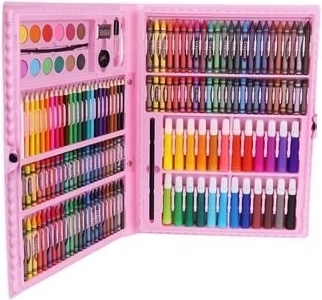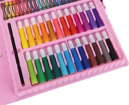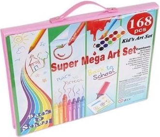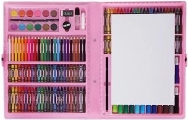Šis gausiai sukomplektuotas rinkinys siūlo viską, ko reikia vaikams ir pradedantiesiems menininkams fantazijai bei smulkiajai motorikai lavinti. 168 dalys, kruopščiai sutalpintos tvirtame lagaminėlyje, užtikrina tvarką, greitą spalvų pasirinkimą ir patogų nešiojimą. Tinka vaikams nuo 3 metų.