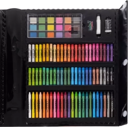 Rinkinyje ne tik įvairių tipų flomasteriai ir pieštukai, bet ir didelis kiekis aliejinių pastelių, tinkamas kartonas jūsų meniniam tobulėjimui bei kita įranga, tokia kaip šablonai, segtukai ir teptukai. Jis sukurtas taip, kad atitiktų tiek pradedančiųjų, tiek pažengusių menininkų poreikius.
