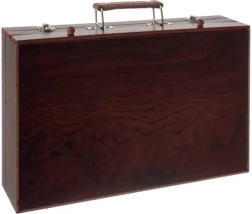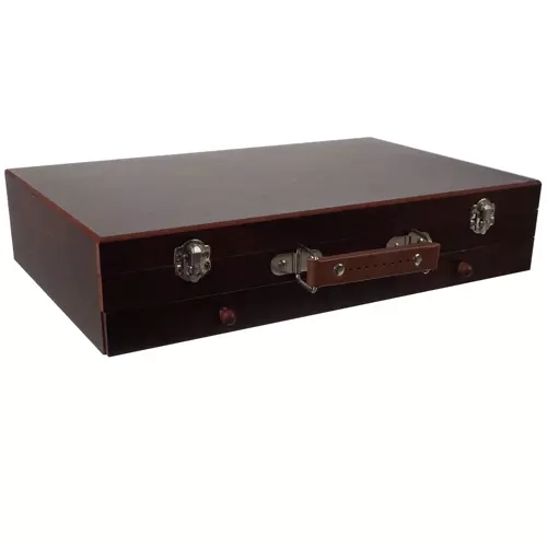 Dėl praktiško medinio lagamino su rankena ir saugiu užsegimu šį rinkinį patogu ir lengva nešiotis. Gerai suorganizuotos dėtuvės suteikia paprastą prieigą prie kiekvienos priemonės, o jos išlieka tvarkingos ir aiškiai išdėstytos.