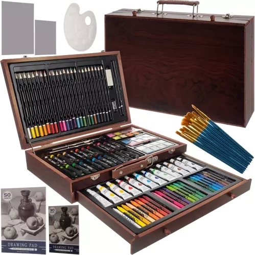 Rinkinyje yra plati dailės įrankių įvairovė, būtina tapybai, piešimui ir kitoms technikoms. Puikiai tinka įkvėpti naujiems kūrybiniams rezultatams.