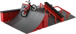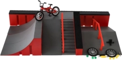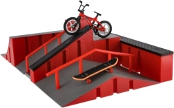 - Pilnas rinkinys: rampa, laiptai su turėklu (rail), pirštų riedlentė ir mini BMX dviratis