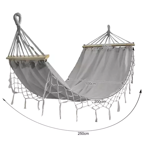 80 cm ilgio skersiniai išlaiko hamako plotą išskleistą kaip lovą – idealiai tinka skaitymui, deginimuisi ir poilsiui.