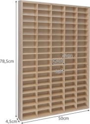 Stilingai ir tvarkingai sutvarkykite automobiliukų kolekciją. Ši kokybiška faneros lentyna siūlo net 90 skyrelių modeliukams ir mini modeliams, paprastą montavimą ant sienos ir galimybę laisvai keisti skyrelių matmenis. Natūrali pušies dekoruota medžio išvaizda puikiai papildys vaikų kambarį ir padės kasdien palaikyti tvarką.