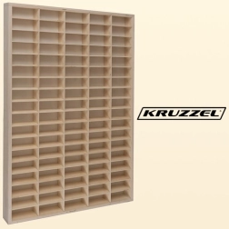 Medinė lentyna KRUZZEL – išmani ir stilinga išeitis visiems mažiems ir dideliems kolekcionieriams. Dėl 90 atskirų skyrelių kiekvieną modelį visada matysite ir pasieksite ranka. Elegantiška natūrali faneros apdaila tinka daugumai interjerų ir kartu tarnauja kaip stilinga vaikų kambario dekoracija.